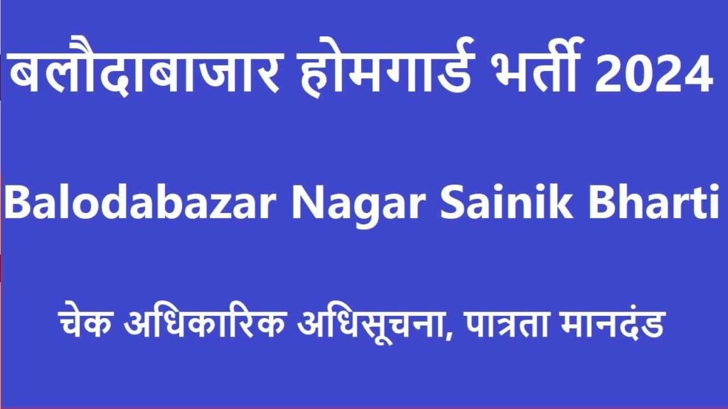 | भर्ती का नाम | Balodabazar Nagar Sainik Bharti 2024 / बलौदाबाजार छत्तीसगढ़ होमगार्ड भर्ती 2024 |