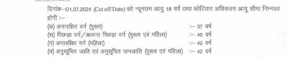 आयु सीमान्यूनतम 18 वर्ष तथा अधिकतम 42 वर्ष तक