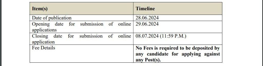 | आवेदन की अंतिम तिथि | 08 जुलाई 2024 तक |