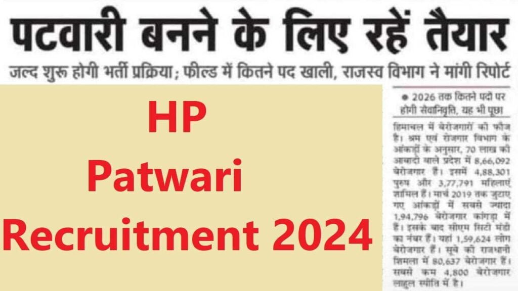 HP Patwari Recruitment 2024- Check Eligibility, Fee, Selection Process हिमाचल प्रदेश पटवारी भर्ती