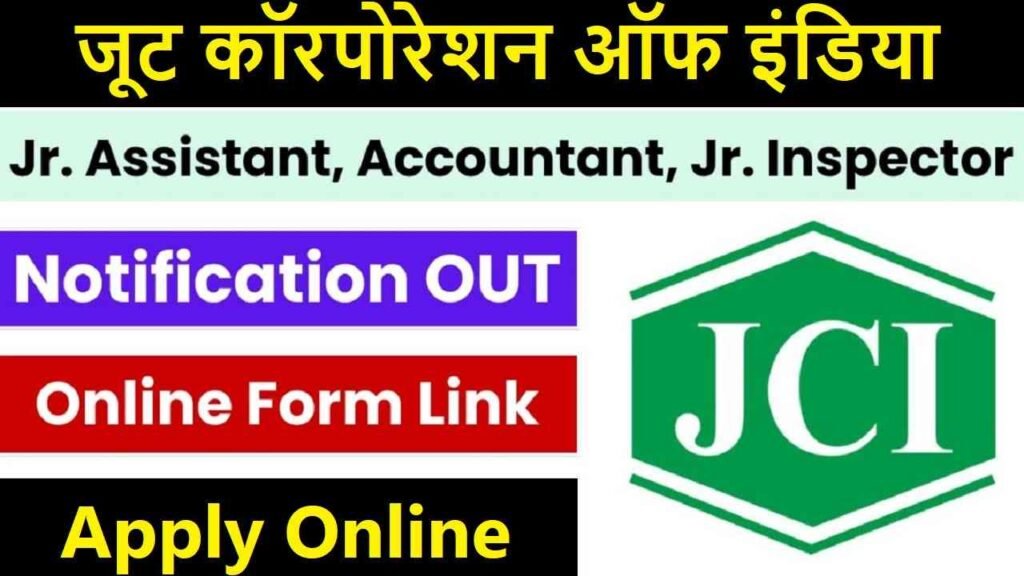Jute Corporation of India JCI Recruitment 2024– जूट कॉरपोरेशन ऑफ इंडिया (JCI) ने जूनियर असिस्टेंट, अकाउंटेंट और जूनियर इंस्पेक्टर पदों सहित विभिन्न गैर-कार्यकारी पदों (नियमित) की भर्ती के लिए अधिसूचना जारी की है। जिसमें जूनियर असिस्टेंट, अकाउंटेंट और जूनियर इंस्पेक्टर पदों की 90 रिक्तियों की घोषणा की गई है।