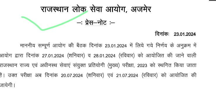 राजस्थान लोक सेवा आयोग ने जब से आरएएस मुख्य एग्जाम RAS Mains Exam Date2023 की घोषणा की तब से जयपुर में छात्रो ने भूख हड़ताल कर दी और धरने पर बेठ गये है | छात्रो की मांग यह है की RAS Mains Exam की परीक्षा तिथि27th and 28th January 2024 को आगे बढाया जाये क्योकि इतने कम समय के कारण छात्र पूर्ण रूप से परिक्षा की तयारी नही कर पा रहे है