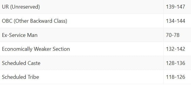 - एसएससी जीडी परीक्षा के लिए श्रेणी के अनुसार अपेक्षित कट-ऑफ यहां निचे दी गई है।