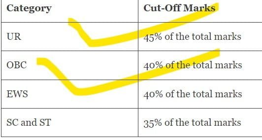 - यूआर– कुल अंकों का 45% प्रतिशत |