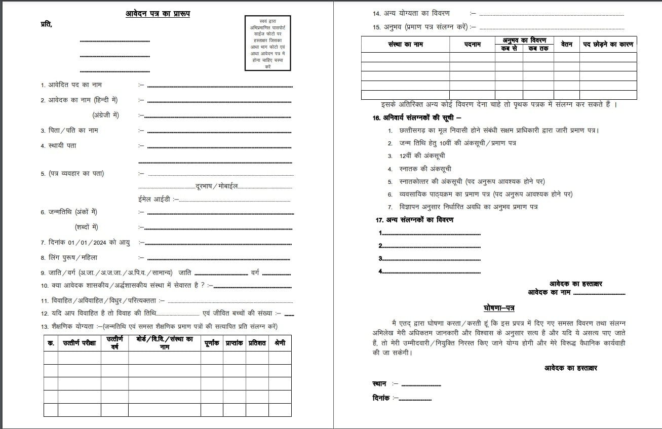 • आवेदन पत्र निर्धारित प्रारूप में जमा किया जावे। अपूर्ण/अस्पष्ट एवं त्रुटिपूर्ण आवेदन पत्र अमान्य कर दिये जायेंगे एवं इस संबंध में अभ्यर्थियों को कोई सूचना नहीं दी जायेगी।