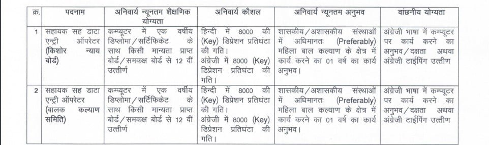 भारत शासन, महिला एवं बाल विकास विभाग द्वारा स्वीकृत मिशन वात्सल्य योजना के प्रावधानों एवं स्वीकृति अनुसार मिशन वात्सल्य योजना के क्रियान्वयन हेतु जिला बाल संरक्षण इकाई, किशोर न्याय बोर्ड एवं बालक कल्याण समिति के विभिन्न संविदा पदों पर भर्ती के लिए पात्र आवेदकों से दिनांक 23.08.2024 तक आवेदन आमंत्रित है।